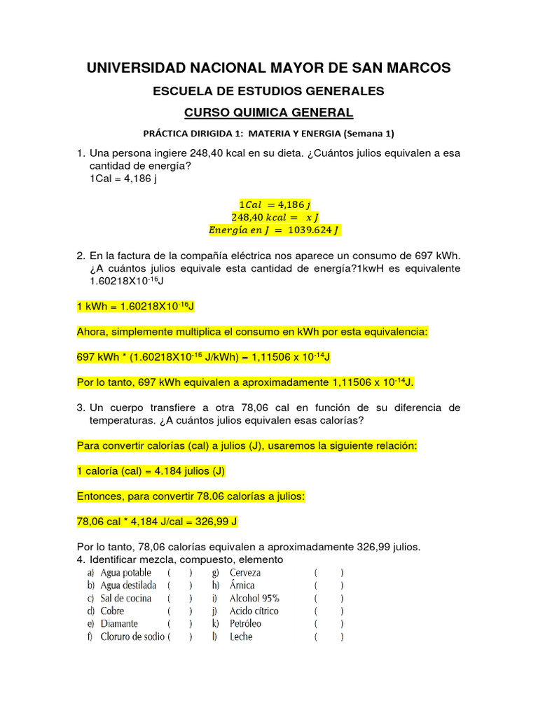 PRÁCTICA DIRIGIDA 1: MATERIA Y ENERGIA (Semana 1)