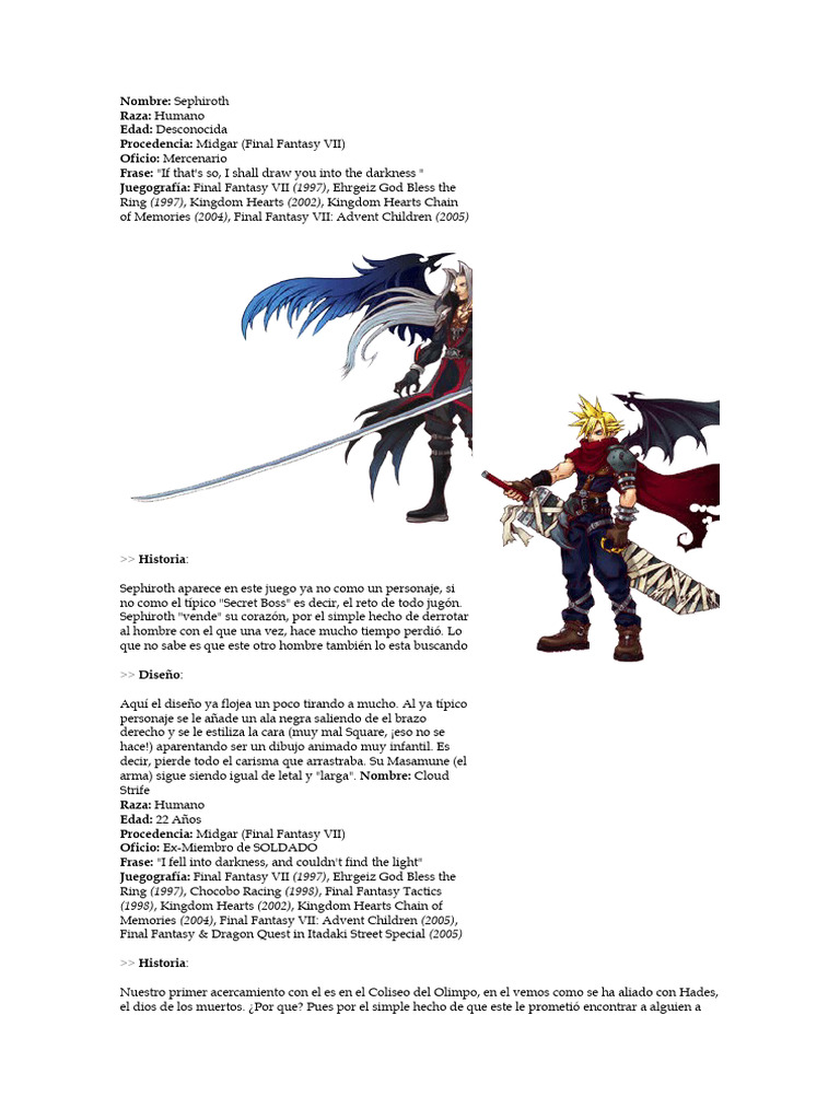 Este es uno de los diseños mas trabajados de Tetsuya Nomura. Todos los que recuerden