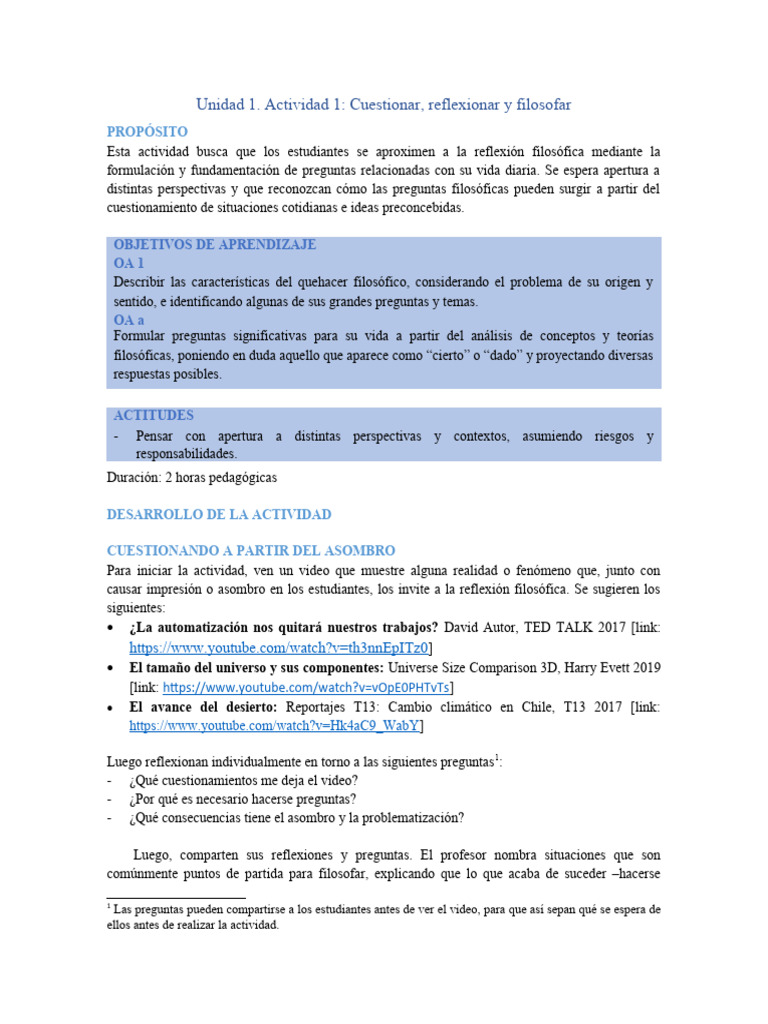 Actividad 1: Cuestionar, reflexionar y filosofar