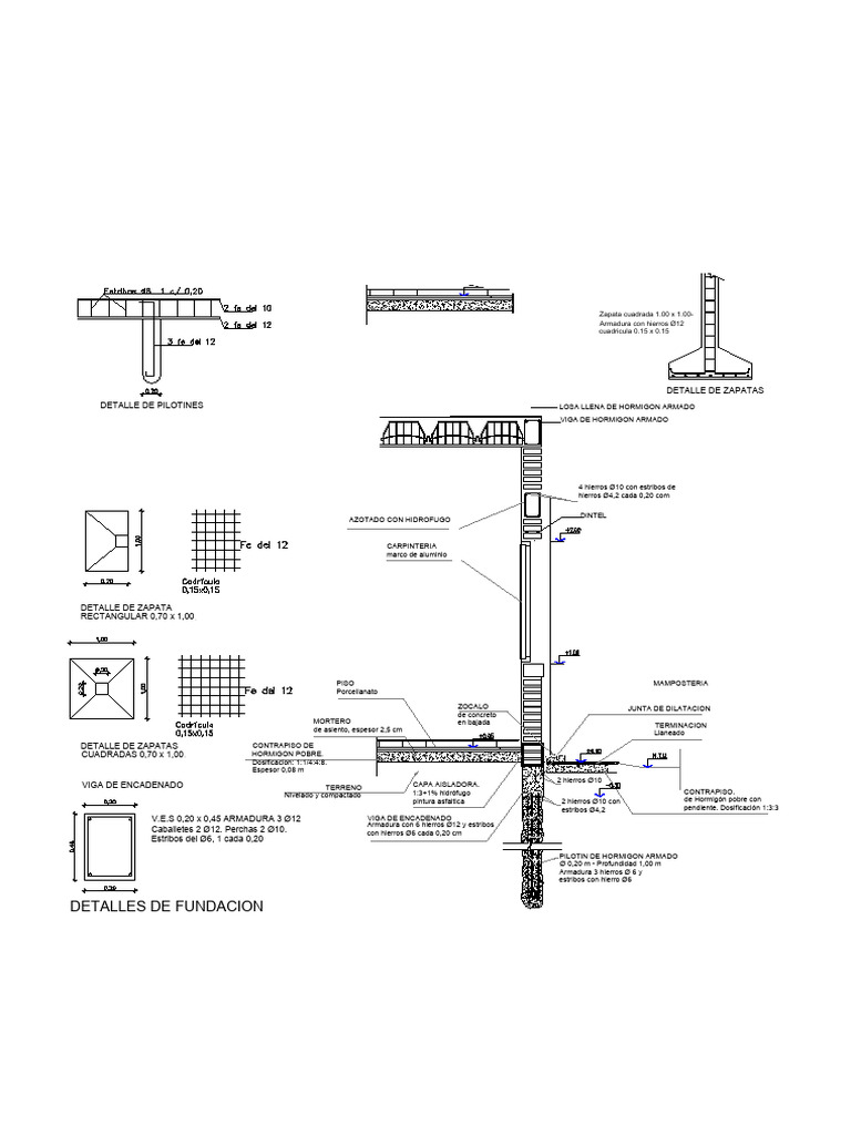 DETALLE DE ZAPATAS CONTRAPISO DE