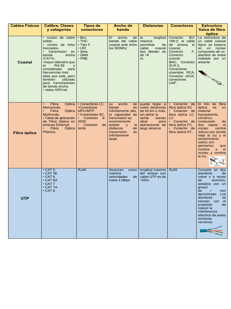 Cables Físicos Calibre, Clases Tipos de Ancho de Distancias Conectores Estructura