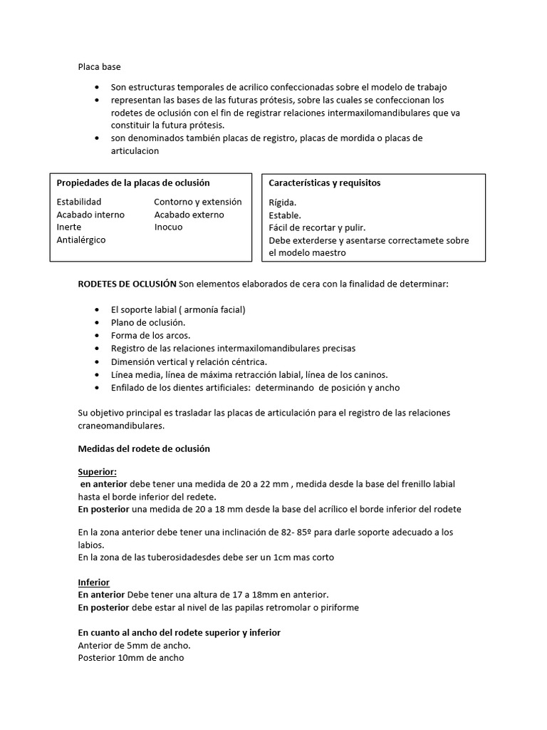 Propiedades de la placas de oclusión Características y requisitos