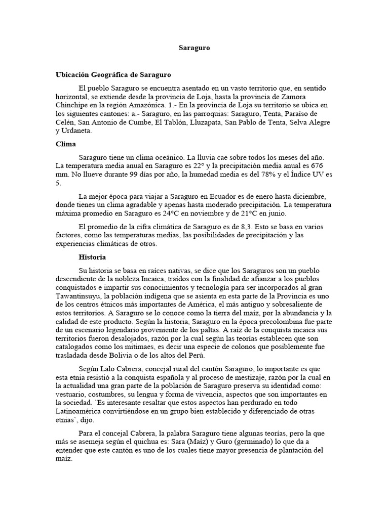 Saraguro aún no está determinado con exactitud, sin embargo, para algunos