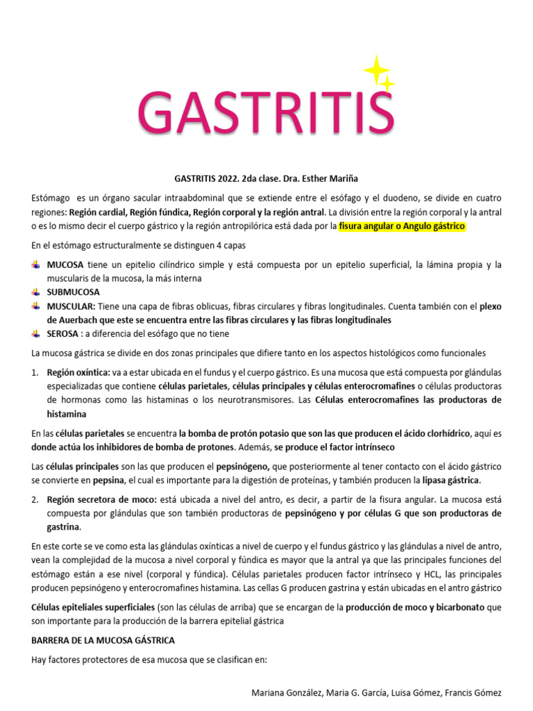 GASTRITIS 2022. 2da clase. Dra. Esther Mariña