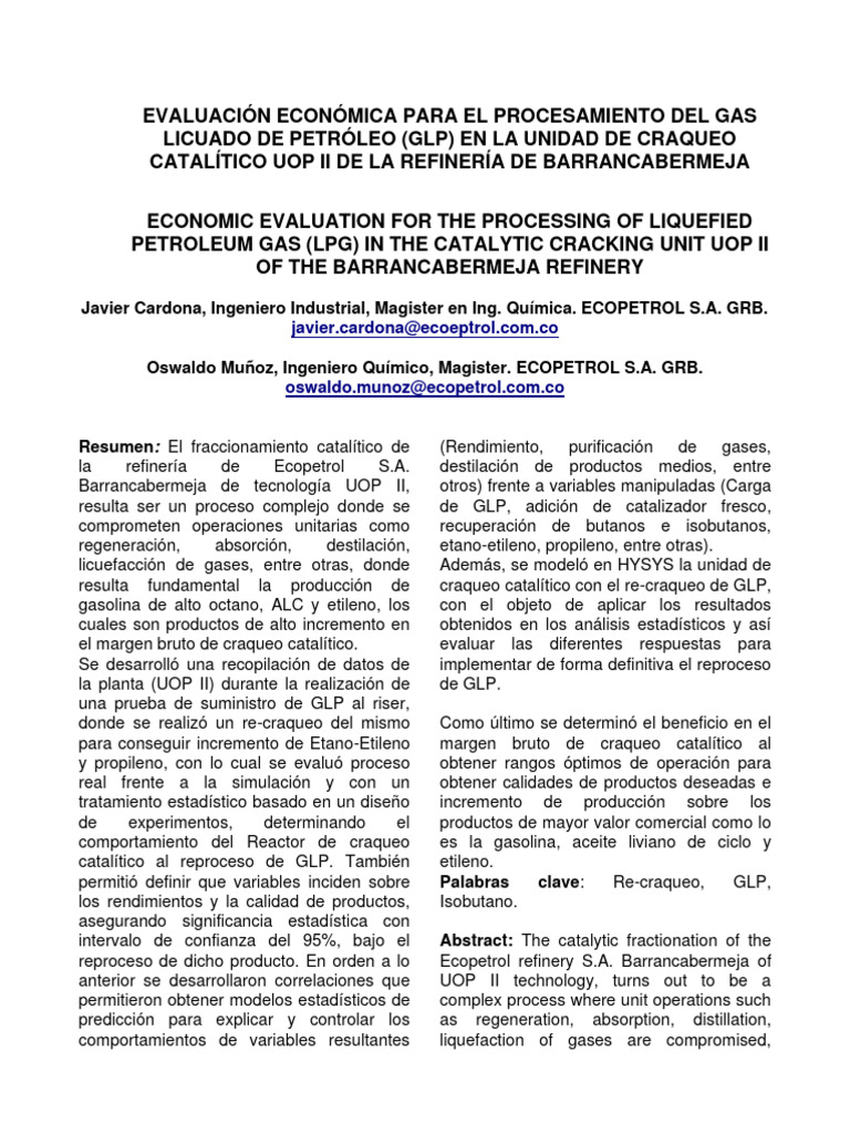 permitió definir que variables inciden sobre Palabras clave: Re-craqueo, GLP,