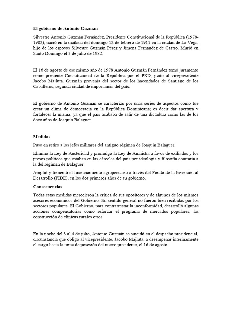 El gobierno de Antonio Guzmán se caracterizó por unas series de aspectos como fue