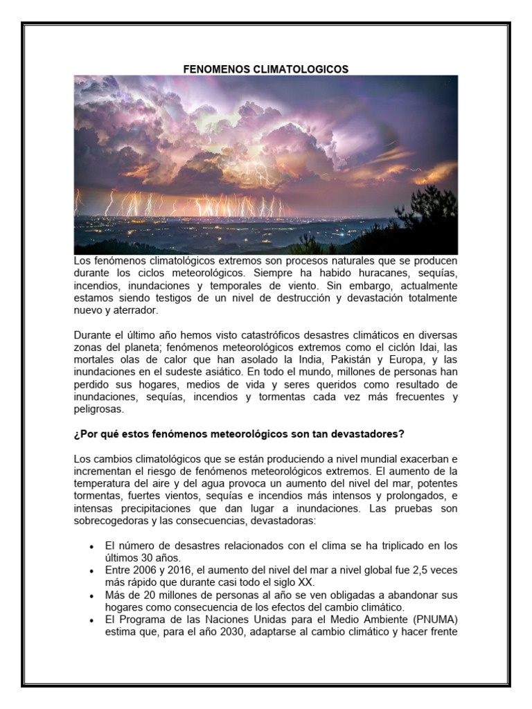 zonas del planeta; fenómenos meteorológicos extremos como el ciclón Idai, las