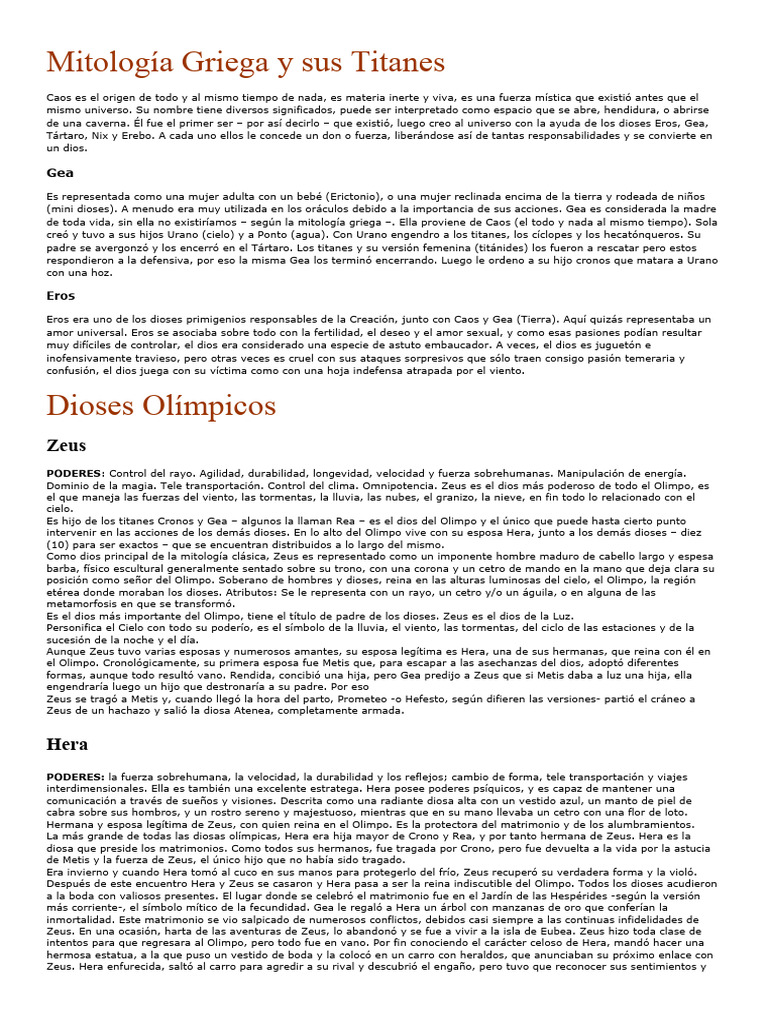 mencionar, que, en la antigüedad, los griegos creían en la existencia de titanes y de dioses, los cuales tenían muchos dones y