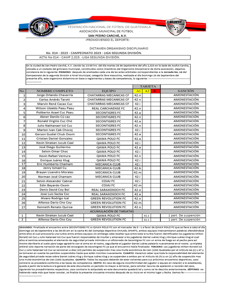 14 Selvin Omar Choc QAWA POLO FC 42.i AMONESTACIÓN