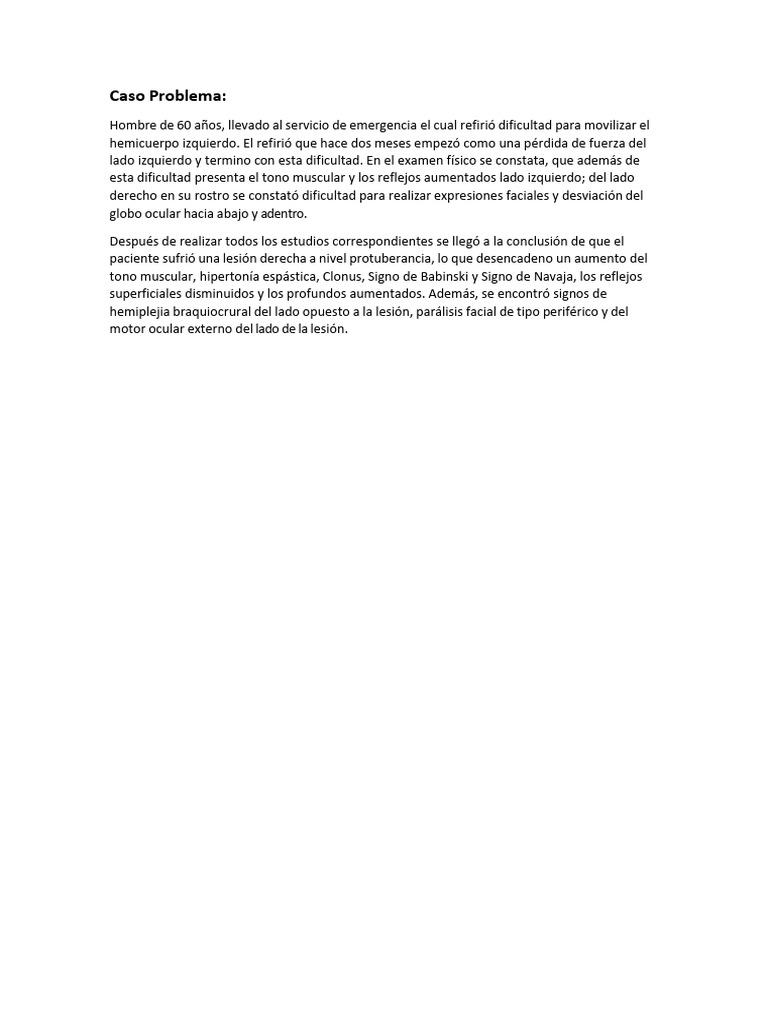 paciente sufrió una lesión derecha a nivel protuberancia, lo que desencadeno un aumento del