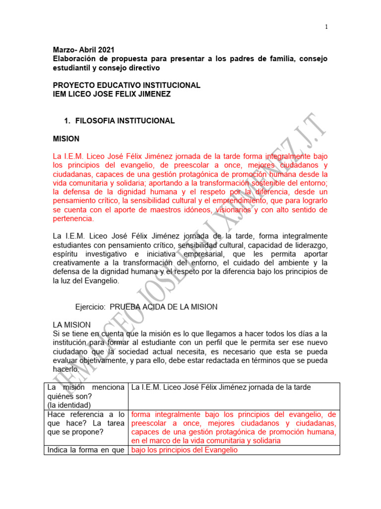 La misión menciona La I.E.M. Liceo José Félix Jiménez jornada de la tarde
