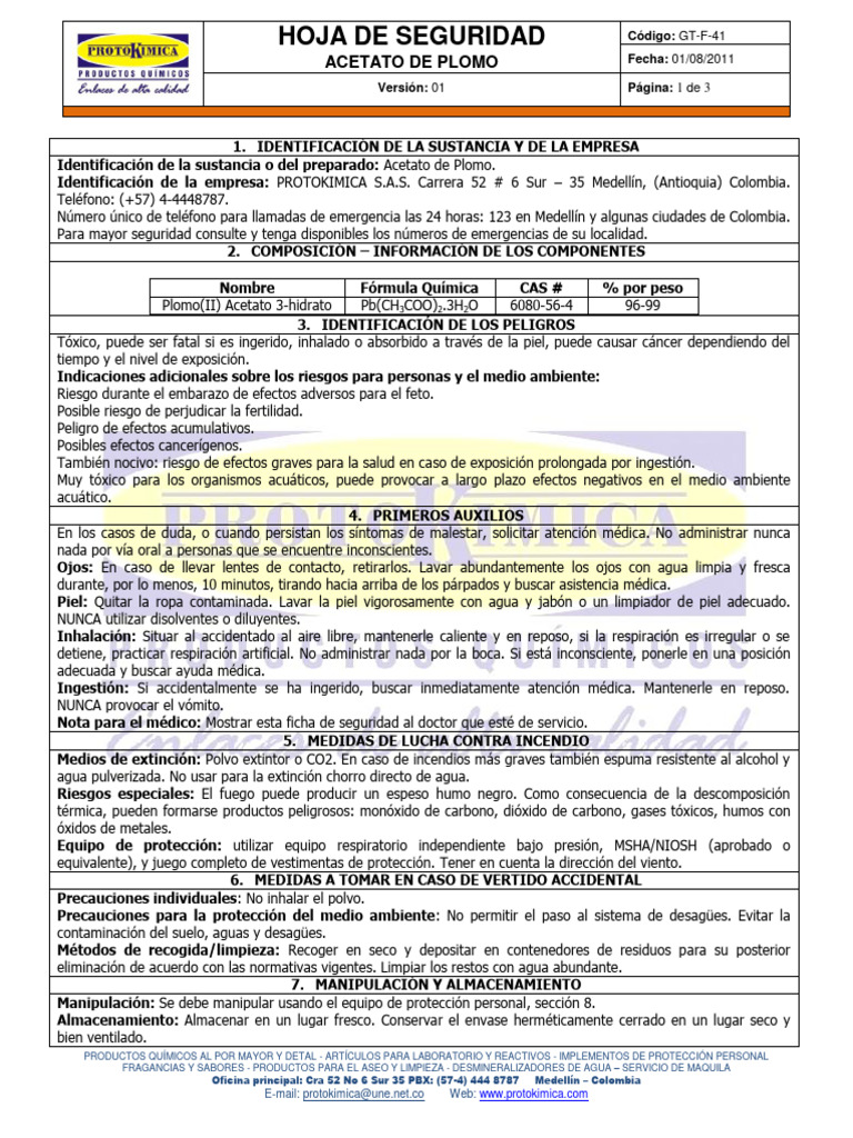 ACETATO DE PLOMO Fecha: 01/08/2011