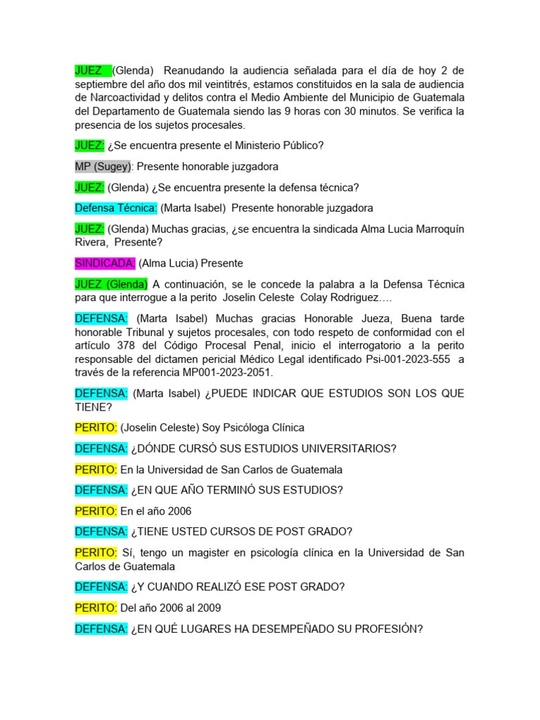 JUEZ: (Glenda) Muchas gracias, ¿se encuentra la sindicada Alma Lucia Marroquín