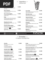 Chacarera (porotos verdes, tomate, ají verde) $ 7.050 Agüita de Hierba Natural (menta-limón) $ 1.050