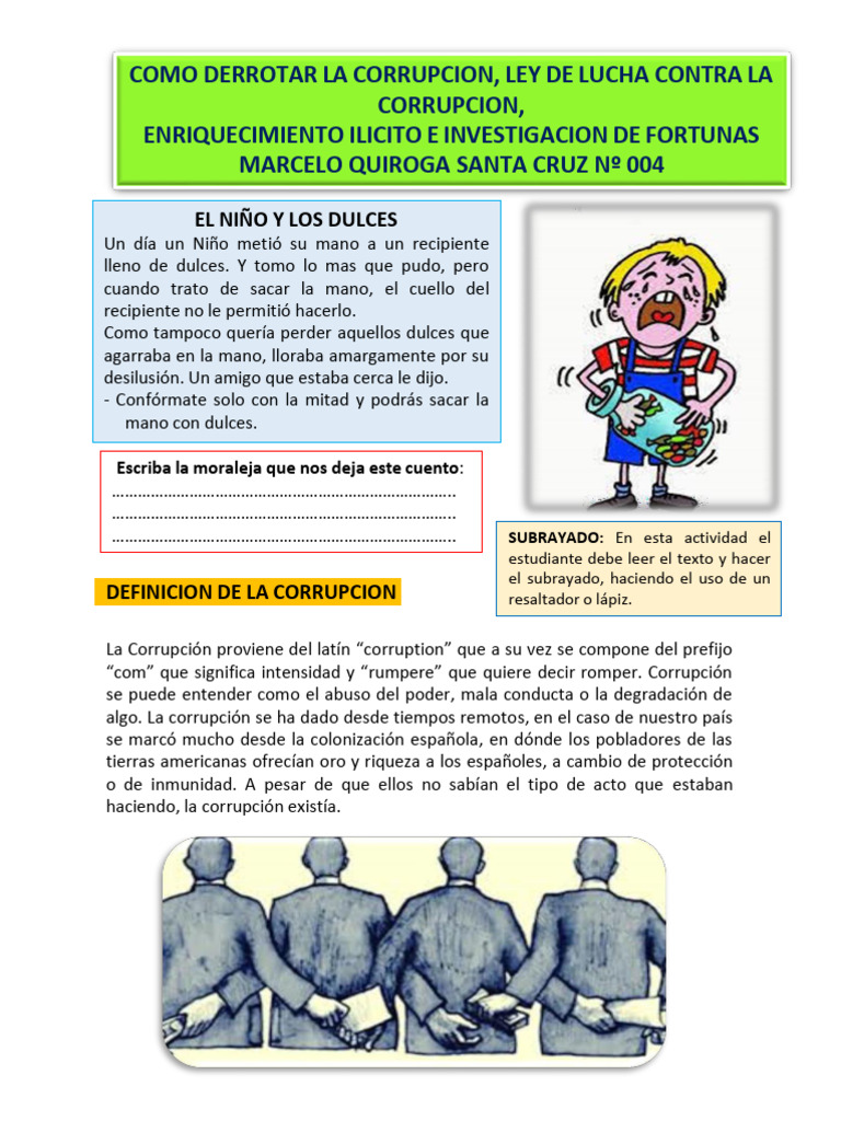 ¿QUE ES LA CORRUPCION? estudiante debe leer el texto y hacer el
