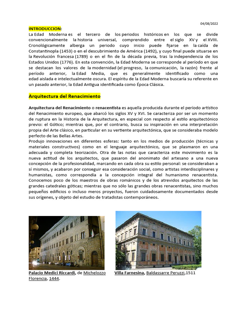 La Historia de la Arquitectura del Renacimiento, como éste mismo, suele dividirse en dos