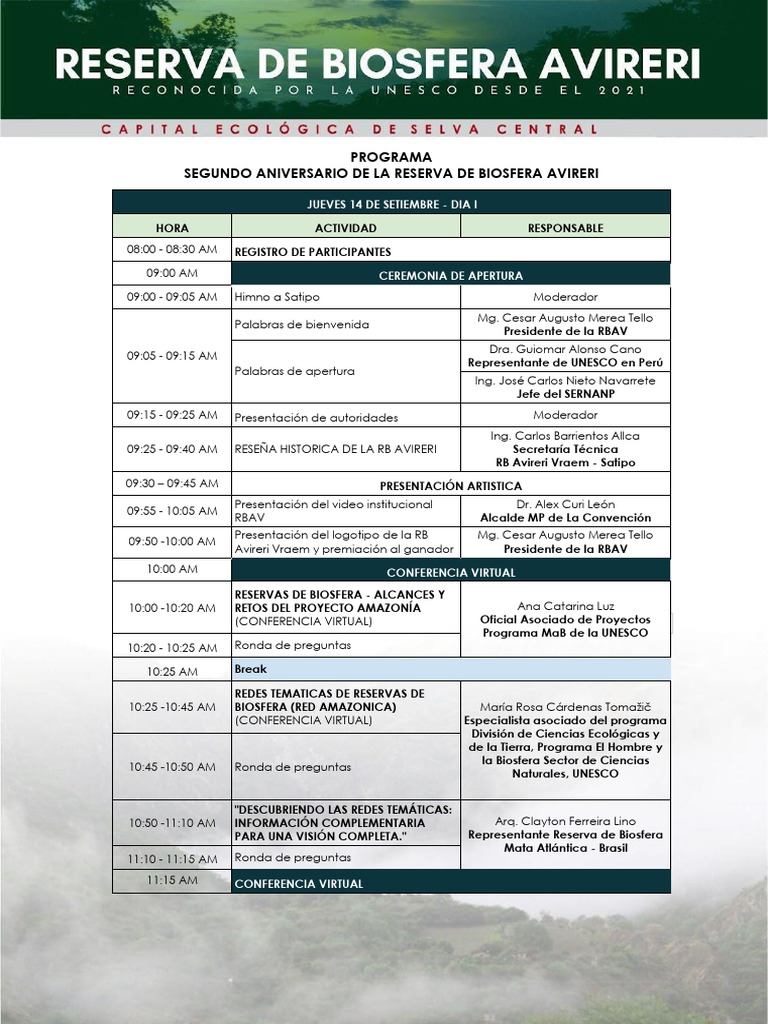 12:20 - 12:30 PM ACUERDO DE SATIPO Todas las Reservas de Biosfera