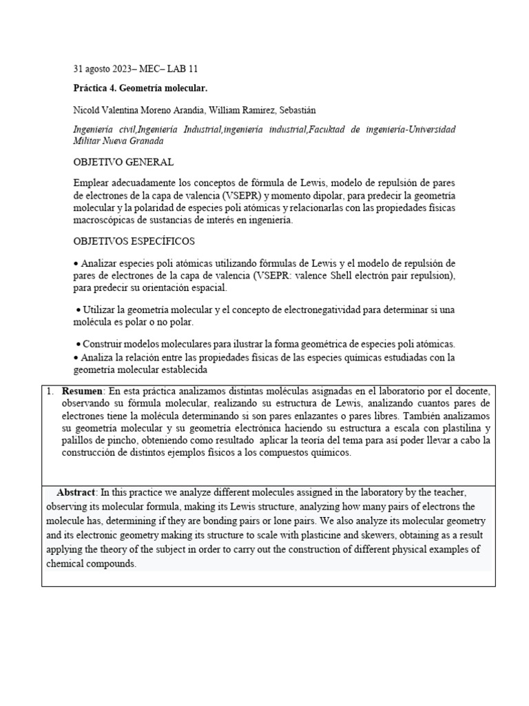 1. Resumen: En esta práctica analizamos distintas moléculas asignadas en el laboratorio por el docente,