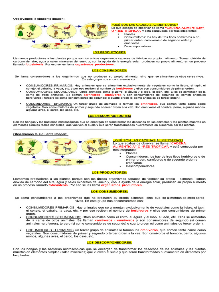 animales herbívoros), tercero (si come consumidores de segundo) o cuarto orden (si come animales de tercer orden).