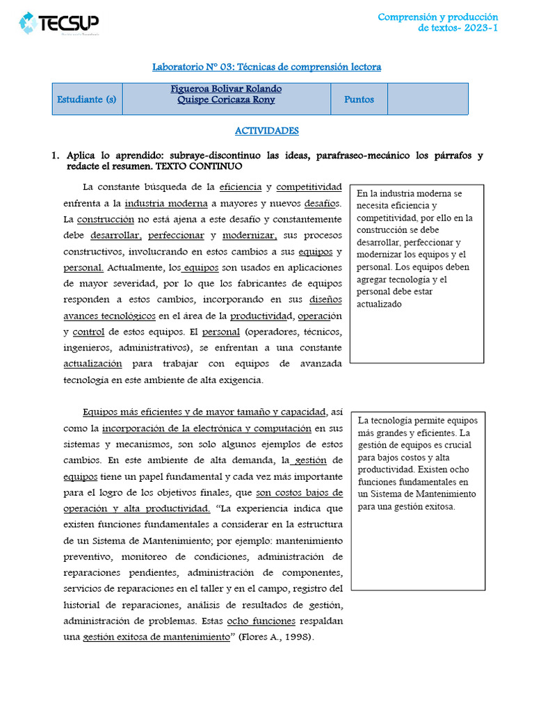 Laboratorio N° 03: Técnicas de comprensión lectora
