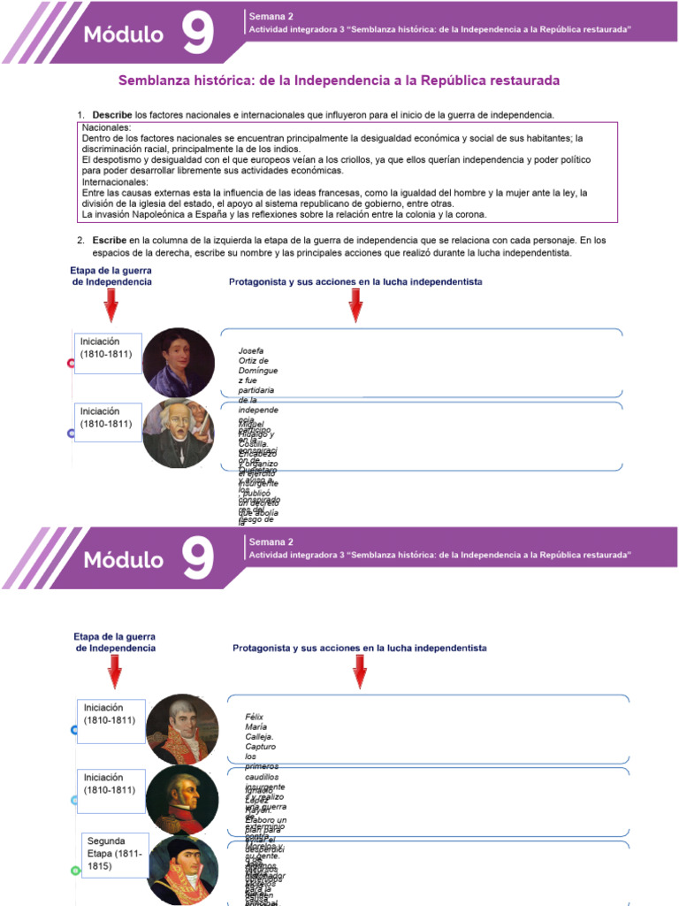 Actividad integradora 3 “Semblanza histórica: de la Independencia a la República restaurada”