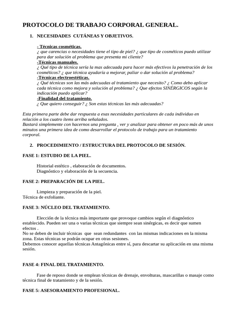 PROTOCOLO DE TRABAJO CORPORAL GENERAL.