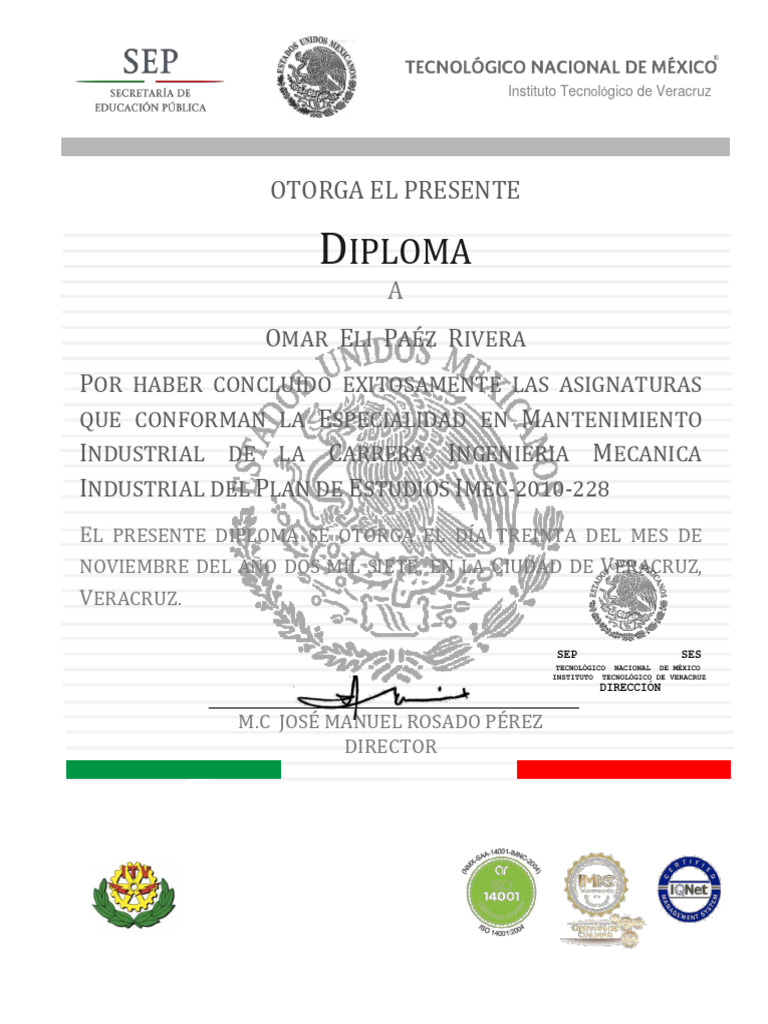 EL PRESENTE DIPLOMA SE OTORGA EL DÍA TREINTA DEL MES DE