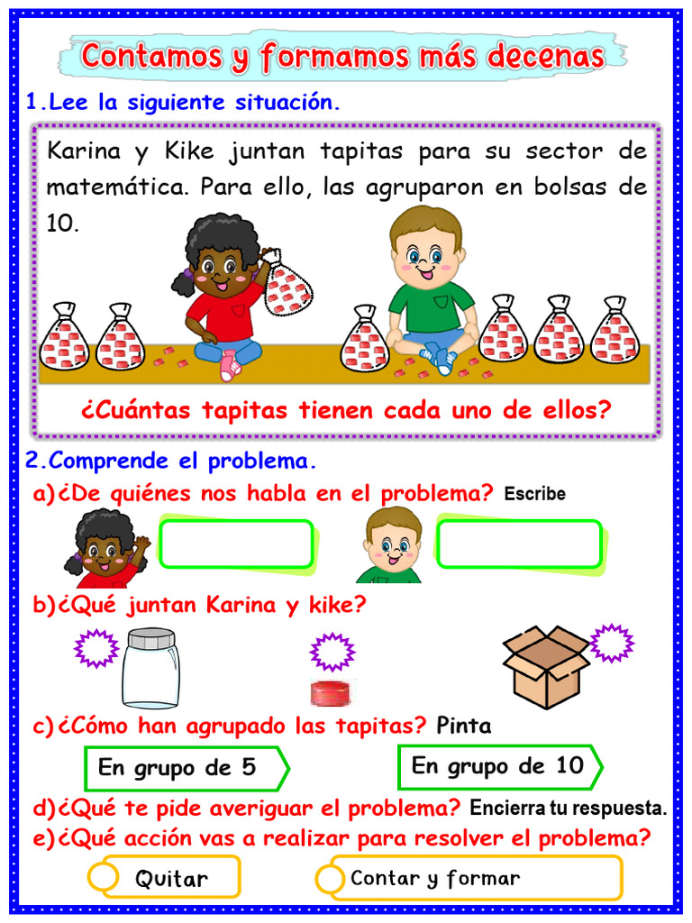 c) ¿Cómo han agrupado las tapitas? Pinta