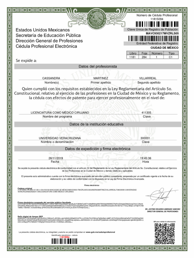 LICENCIATURA COMO MÉDICO CIRUJANO 411305