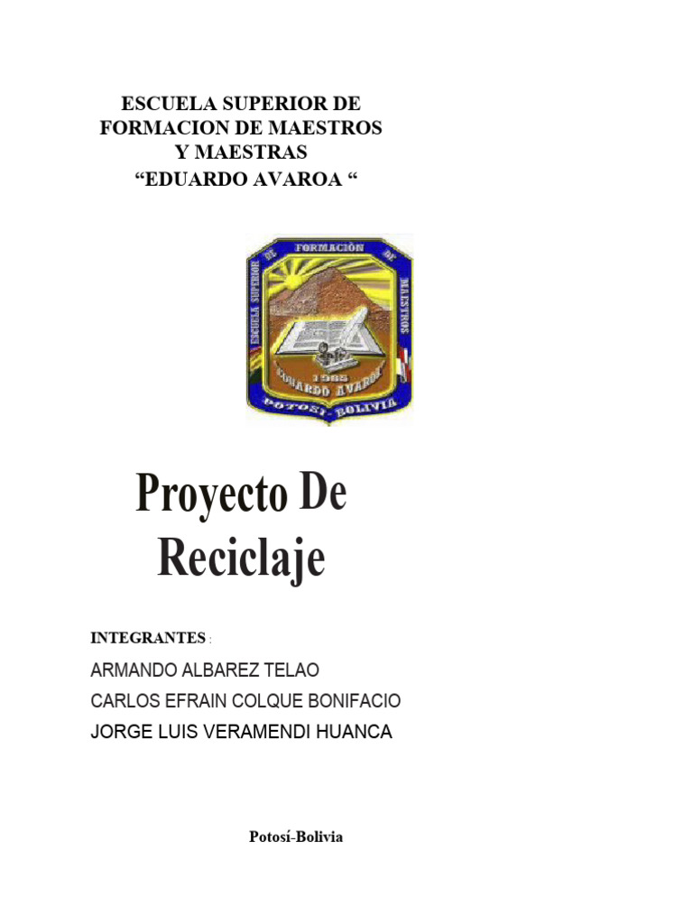 En el entorno de la ESFM Eduardo Avaroa se detecto el problema del reciclaje, el cual se