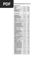 Precios y cantidades de recursos requeridos por tipo