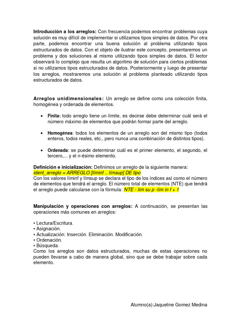 Manipulación y operaciones con arreglos: A continuación, se presentan las