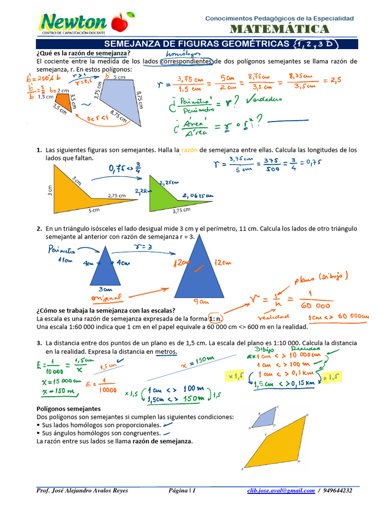 1. Las siguientes figuras son semejantes. Halla la razón de semejanza entre ellas. Calcula las longitudes de los