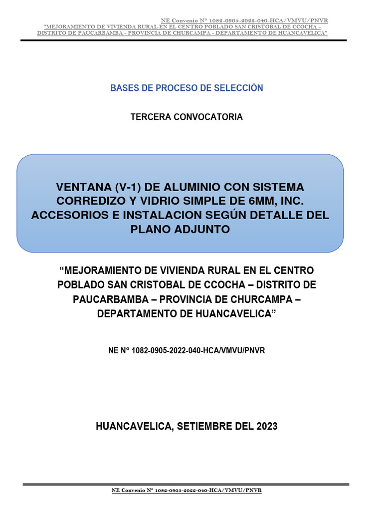 Técnicas y Términos de Referencia) proporcionados por el Núcleo Ejecutor para la adquisición de: VENTANA (V-1) DE