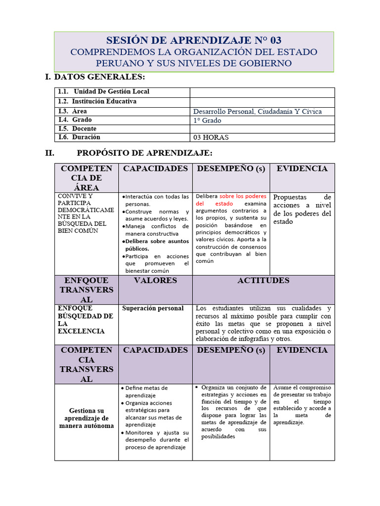 COMPETENCIA: CONVIVE Y PARTICIPA DEMOCRATICAMENTE EN LA BUSQUEDA DEL BIEN COMUN CICLO: VI FECHA: SESION N° 3