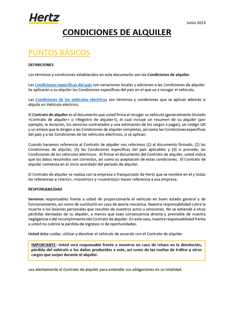 Condiciones de Alquiler de Hertz 2023