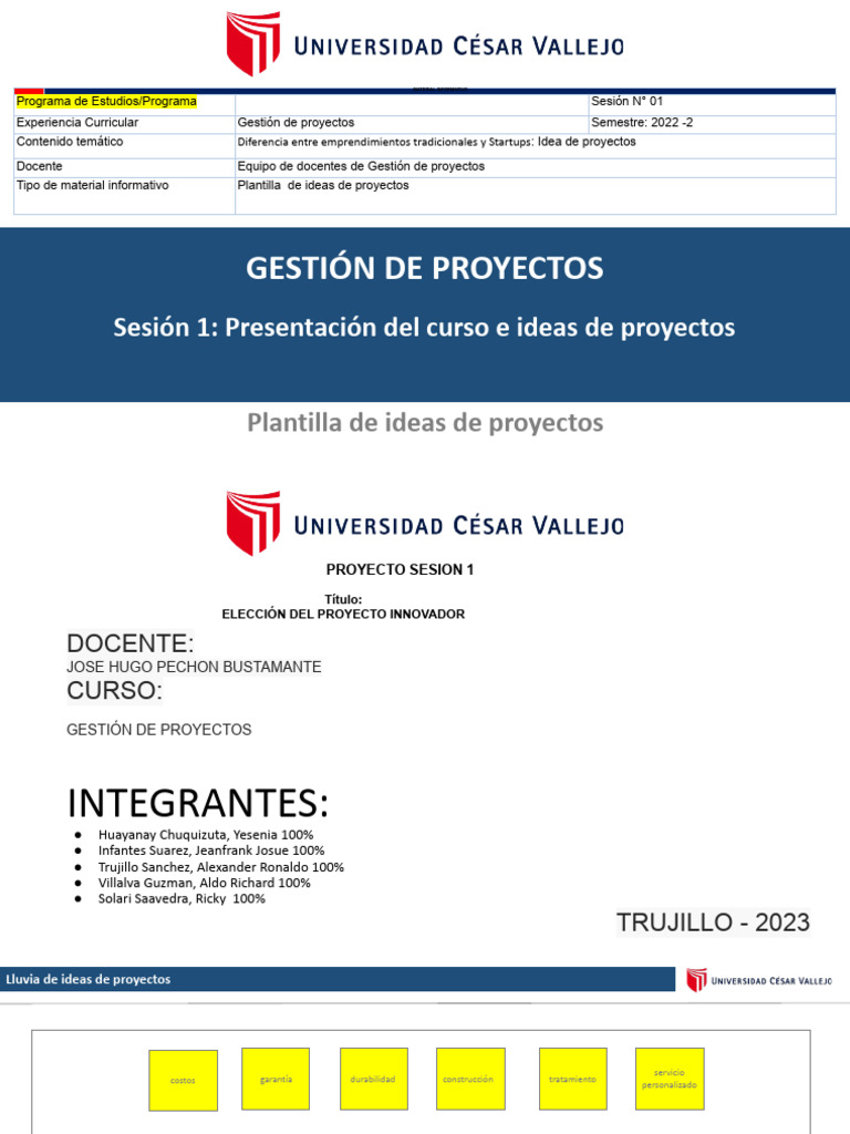 Docente Equipo de docentes de Gestión de proyectos