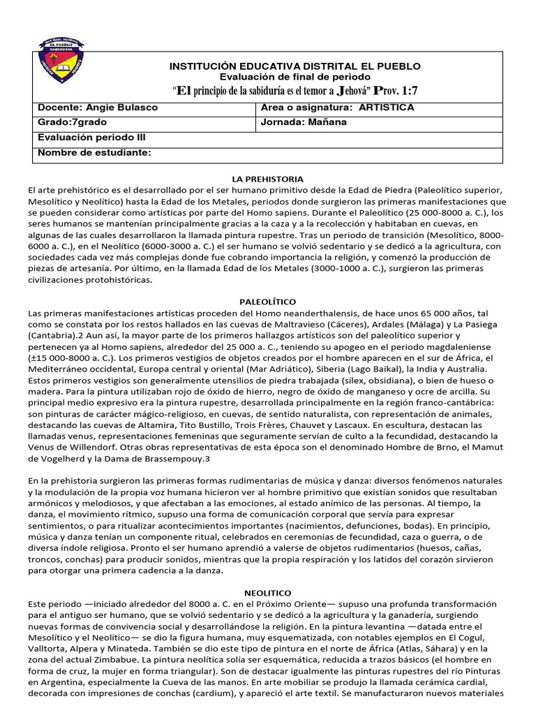 Mesolítico y Neolítico) hasta la Edad de los Metales, periodos donde surgieron las primeras manifestaciones que