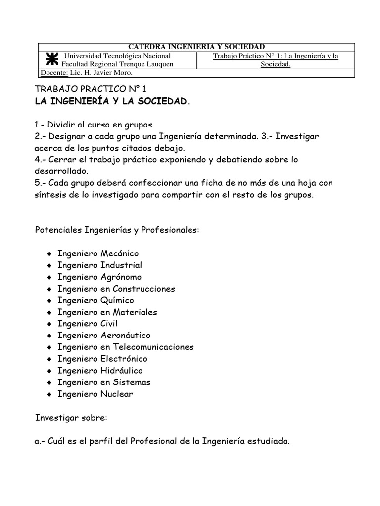 Universidad Tecnológica Nacional Trabajo Práctico N° 1: La Ingeniería y la