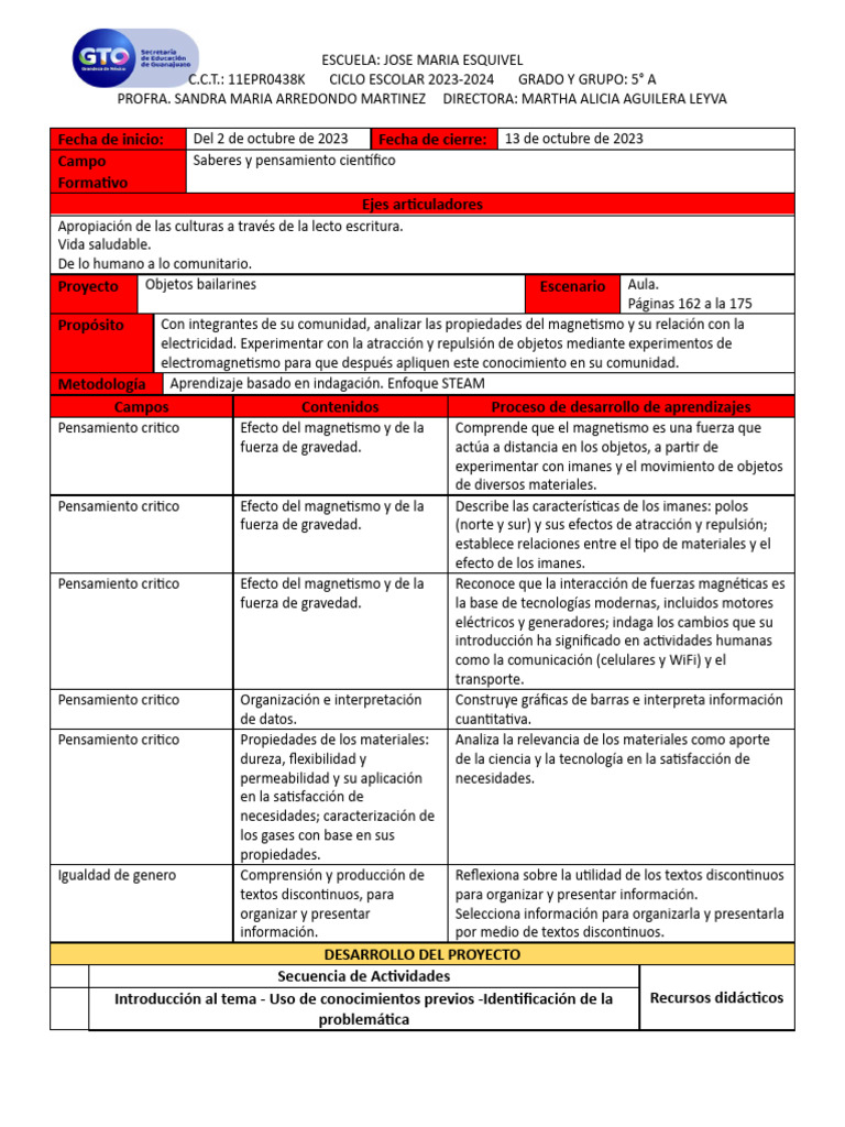 C.C.T.: 11EPR0438K CICLO ESCOLAR 2023-2024 GRADO Y GRUPO: 5° A