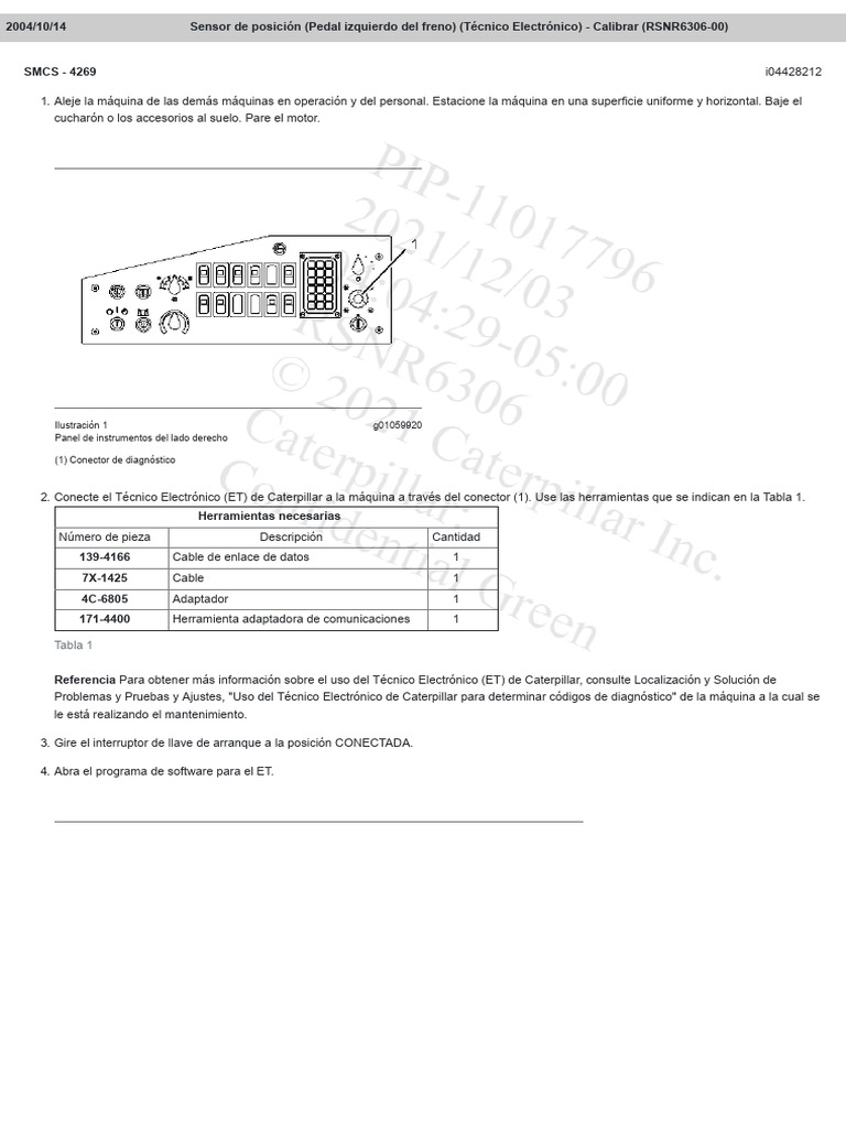 Referencia Para obtener más información sobre el uso del Técnico Electrónico (ET) de Caterpillar, consulte Localización y Solución de