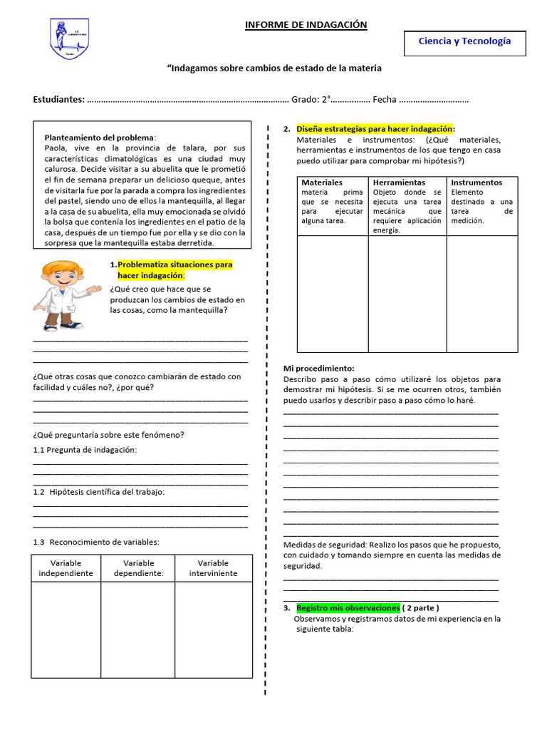 a. Escribo nuevamente mi pregunta de indagación. _______________________________________________
