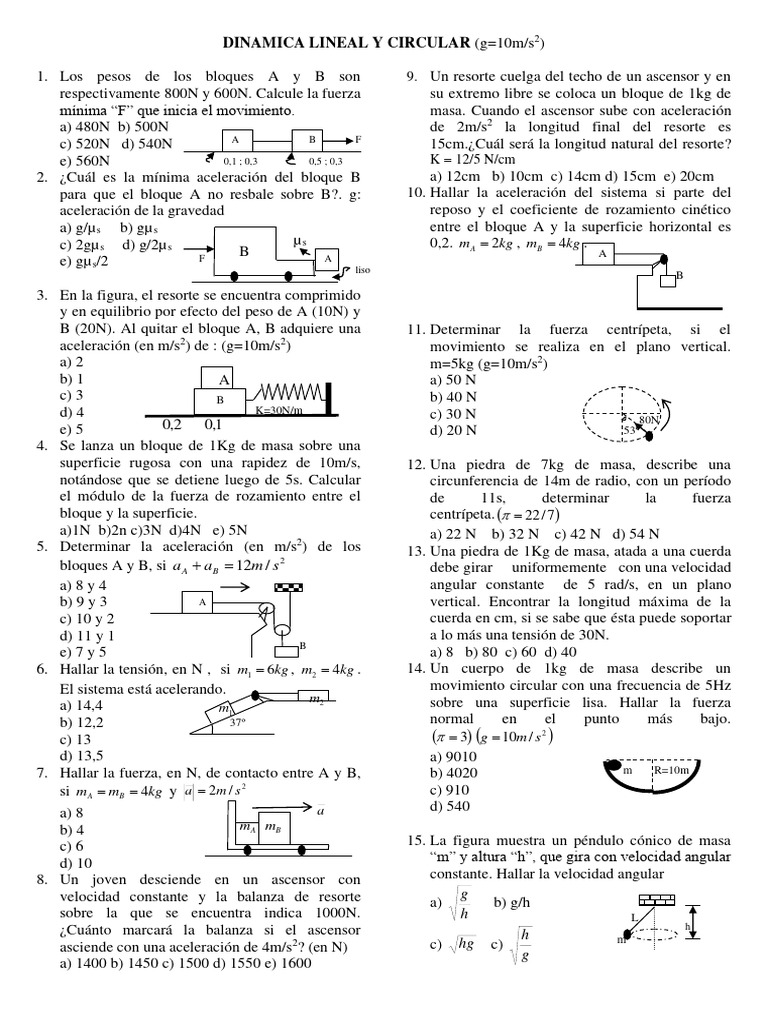 DINAMICA LINEAL Y CIRCULAR (g=10m/s2)