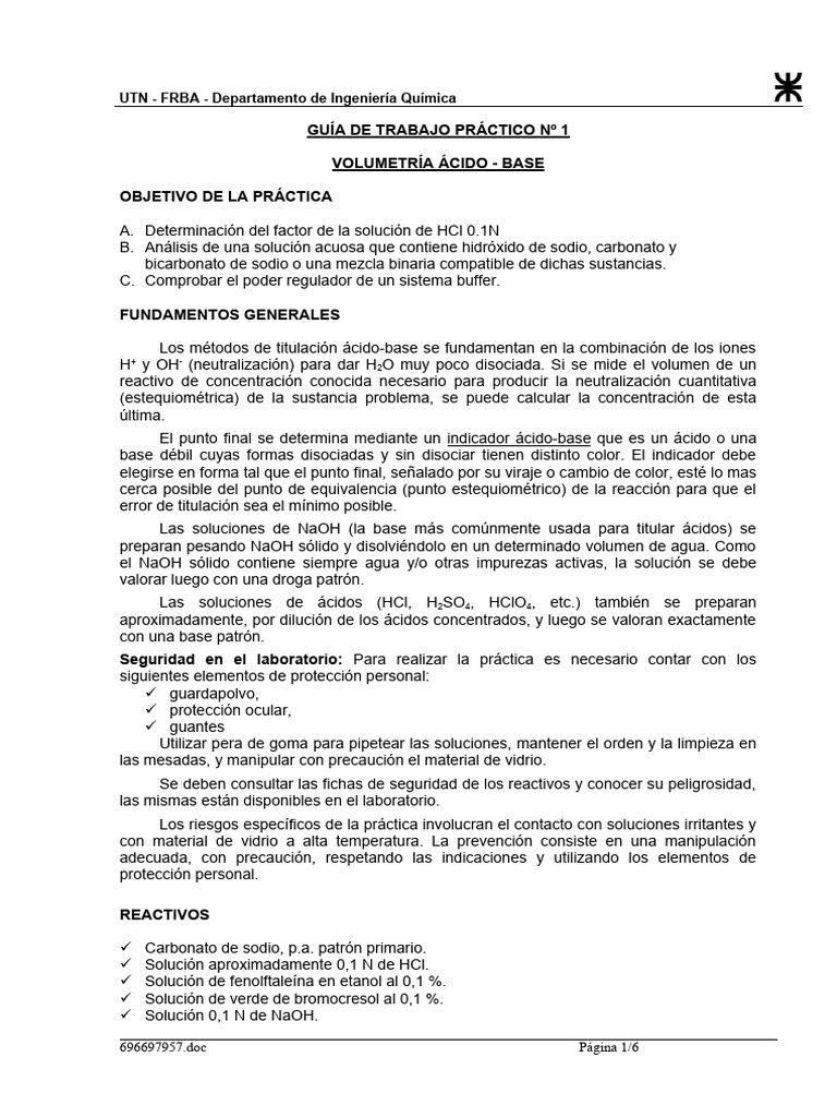 1. ¿Qué sustancias patrón primario podría utilizarse para efectuar la valoración de la