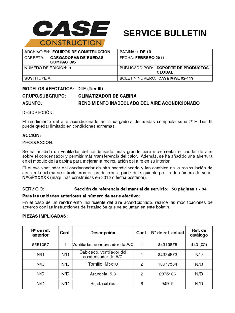 SUSTITUYE A: BOLETÍN NÚMERO: CASE MWL 02-11S