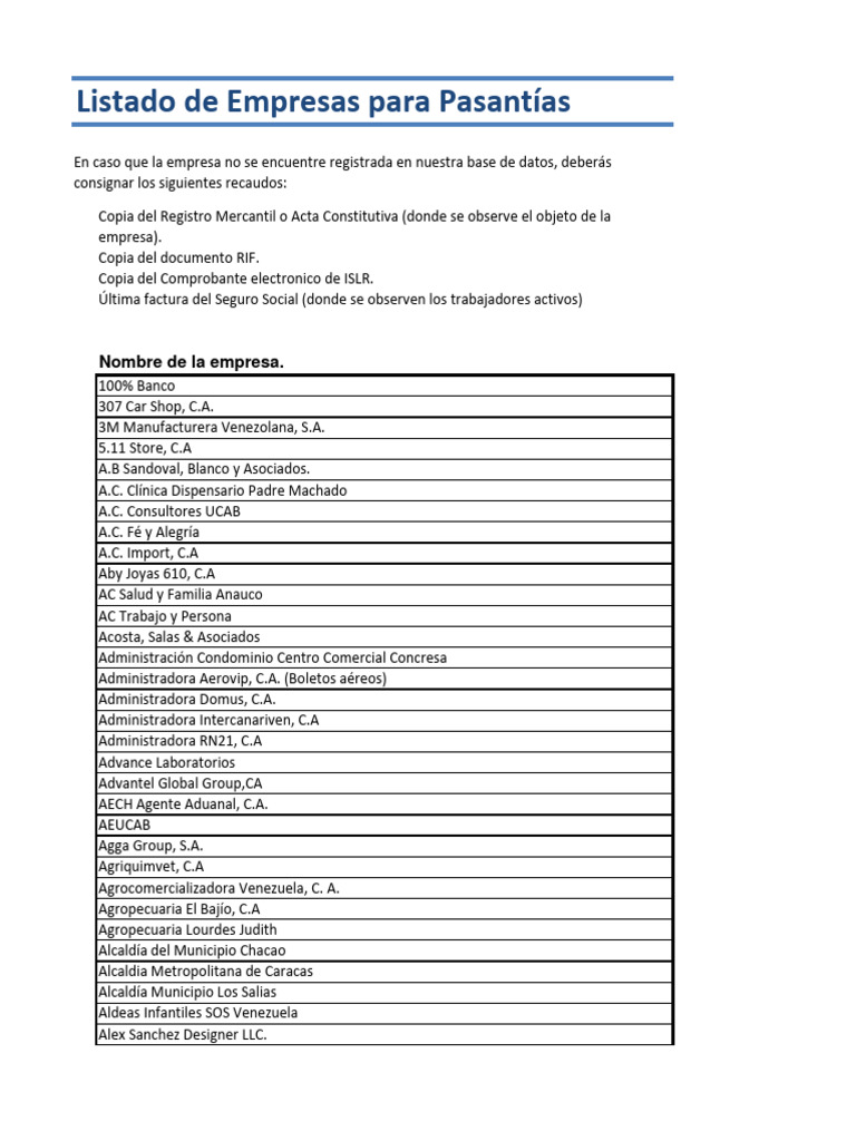 Listado de Empresas para Pasantías