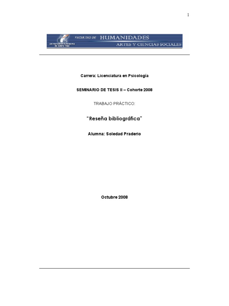Carrera: Licenciatura en Psicologa SEMINARIO DE TESIS II Cohorte 2008 TRABAJO PRCTICO: