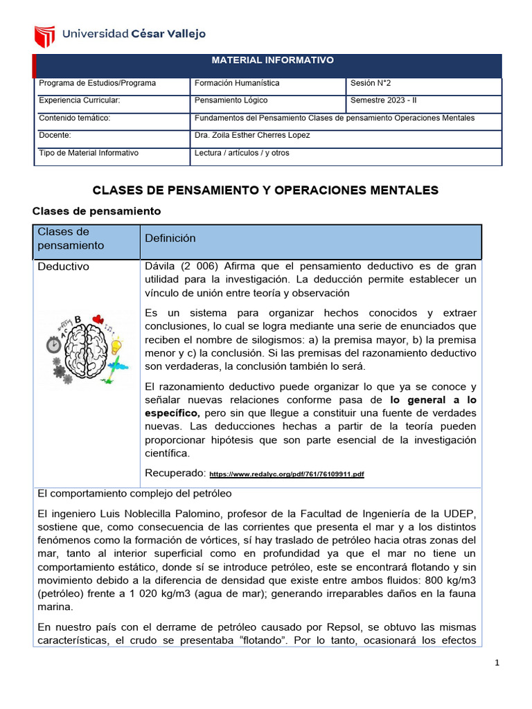 Experiencia Curricular: Pensamiento Lógico Semestre 2023 - II