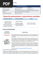 en la que se evidencien 2 clases de pensamiento y 2 operaciones mentales, justificando las