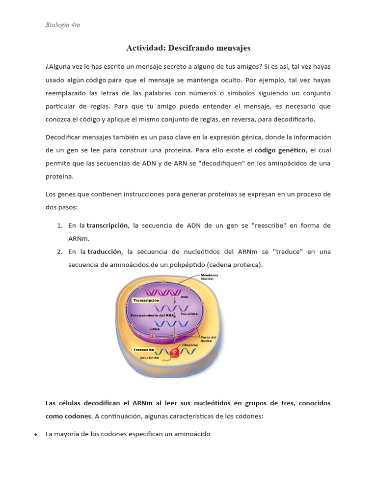 4. Explica con tus palabras que es el código genético. Puedes ayudarte con otros